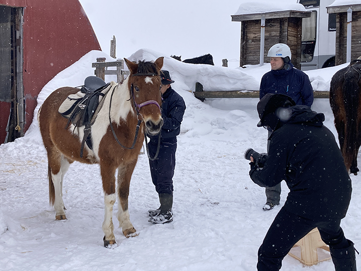 映像の主人公として、地域でALTをしているニュージーランド出身の方に出演を依頼しました。-20°にもなる極寒の環境の中、ホーストレッキングやスノーシューハイク、ファットバイクなどのアクティビティ映像の撮影を行いました。