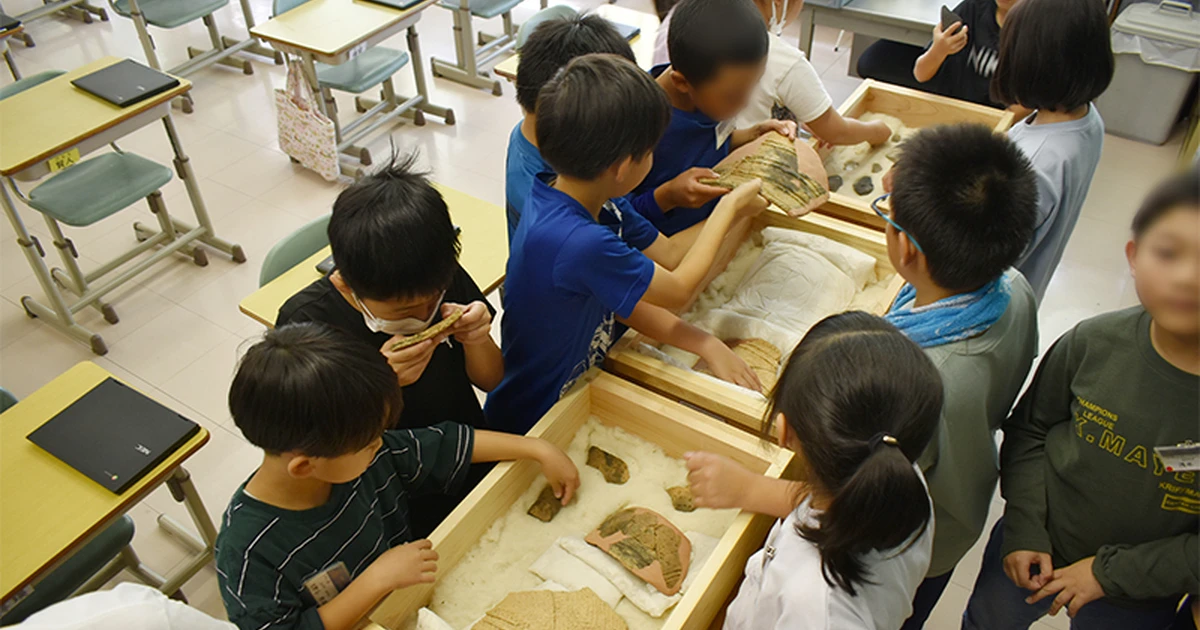 また、各地域から出土した実物資料を活用したゲストティーチャー授業のお手伝いをさせていただきました。