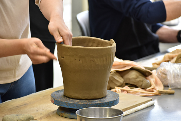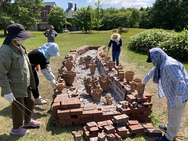 そのため、土器の製作編の動画撮影にあたっては、江別市郷土資料館および同館にて活動している「土器の会 」の皆様に協力いただき、江別市で採取される粘土から輪積みによって土器を作り上げるまでの工程、そして野焼きにより焼成するまでの工程を撮影しました。